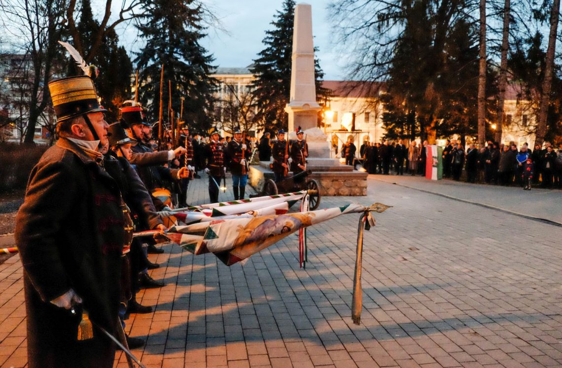 Unul dintre evenimentele-cheie ale comemorării din 15 martie, inaugurarea monumentului ostașilor Revoluției din 1848-49, a avut loc joi seară în Parcul Elisabeta din Sfântu Gheorghe. La inaugurare, viceprimarul Sztakics Éva-Judit a menționat cu nostalgie: „Când noi eram copii mici jucându-ne și plimbându-ne prin parc, ne-au captivat atenția leii, iar părinții și bunicii noștri ne-au povestit că de fapt cei doi lei ocrotesc libertatea și aceste două animale minunate și puternice sunt menite să ne protejeze”.