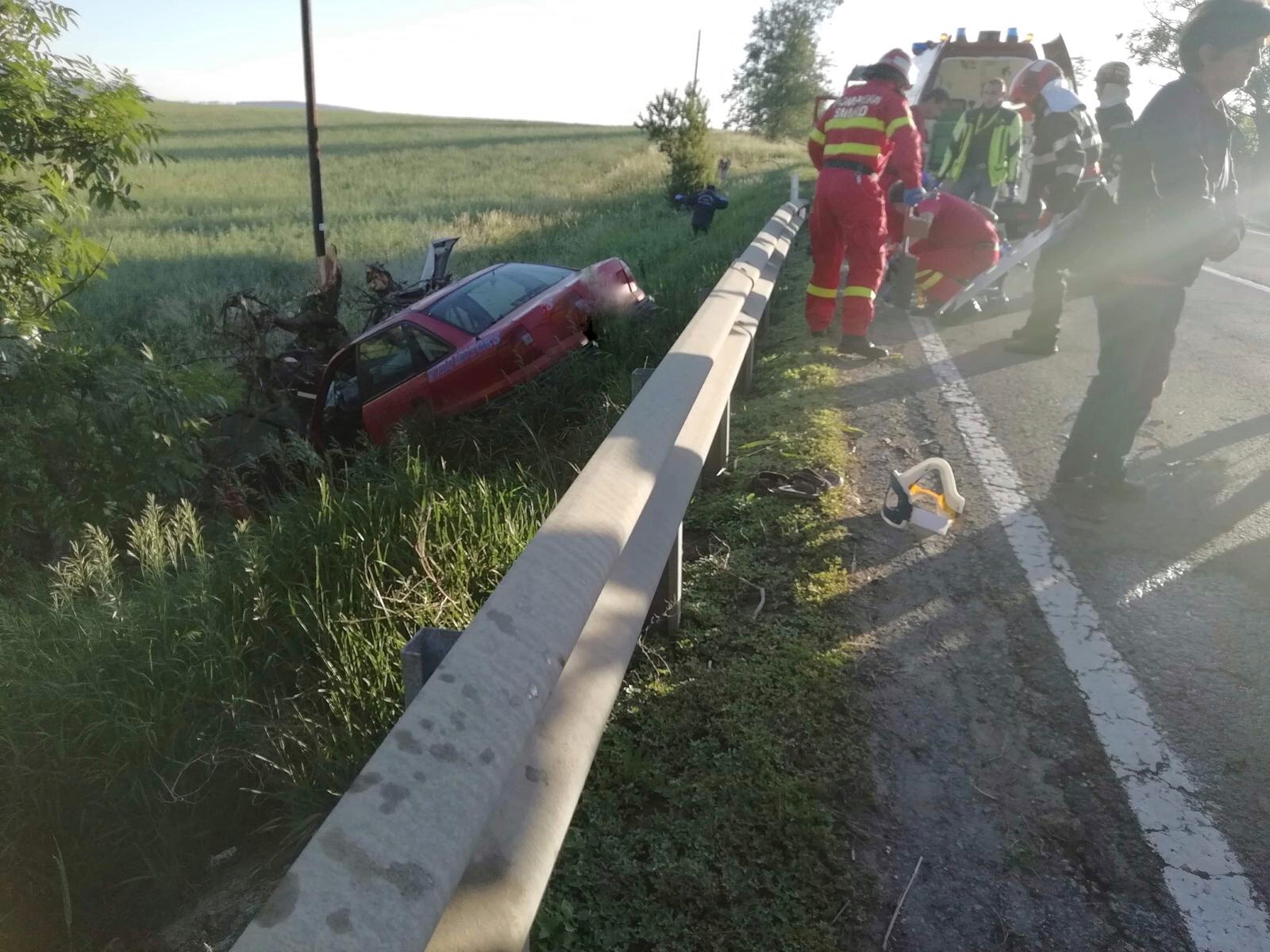 Un autoturism înmatriculat în județul Arad a părăsit partea carosabilă și a acroșat un copac de pe marginea carosabilului.