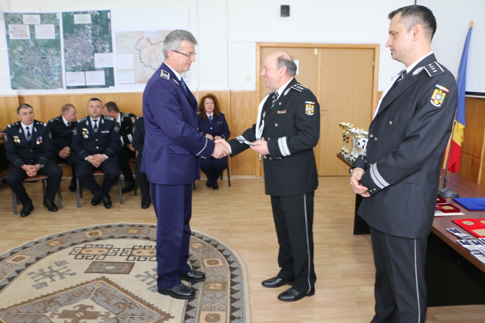 Apoi, într-un cadru festiv, au avut loc înaintări în grad, 40 de ofițeri și agenți fiind avansați în gradul profesional următor. Tot cu acest prilej au fost acordate premii și distincții polițiștilor care s-au remarcat în activitate, dar și premii pentru cei care au participat la competiții sportive.