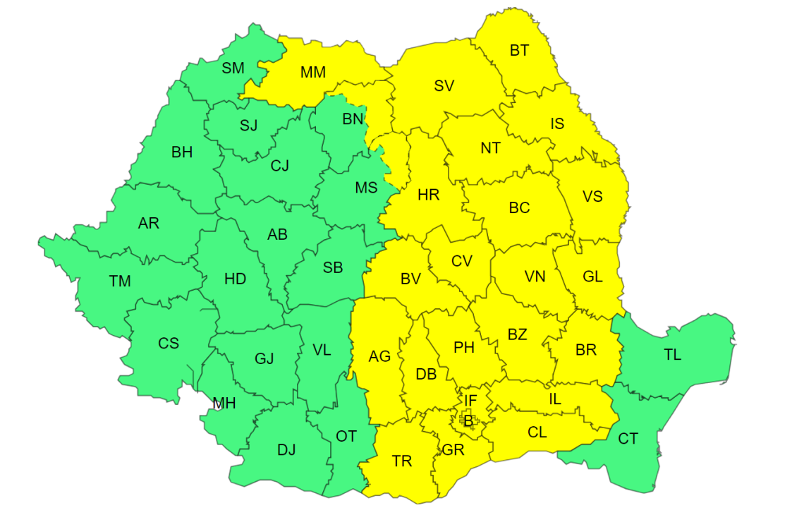 Meteorologii au emis marţi dimineaţă un cod galben de instabilitate atmosferică temporar accentuată, valabil marţi până la ora 23.