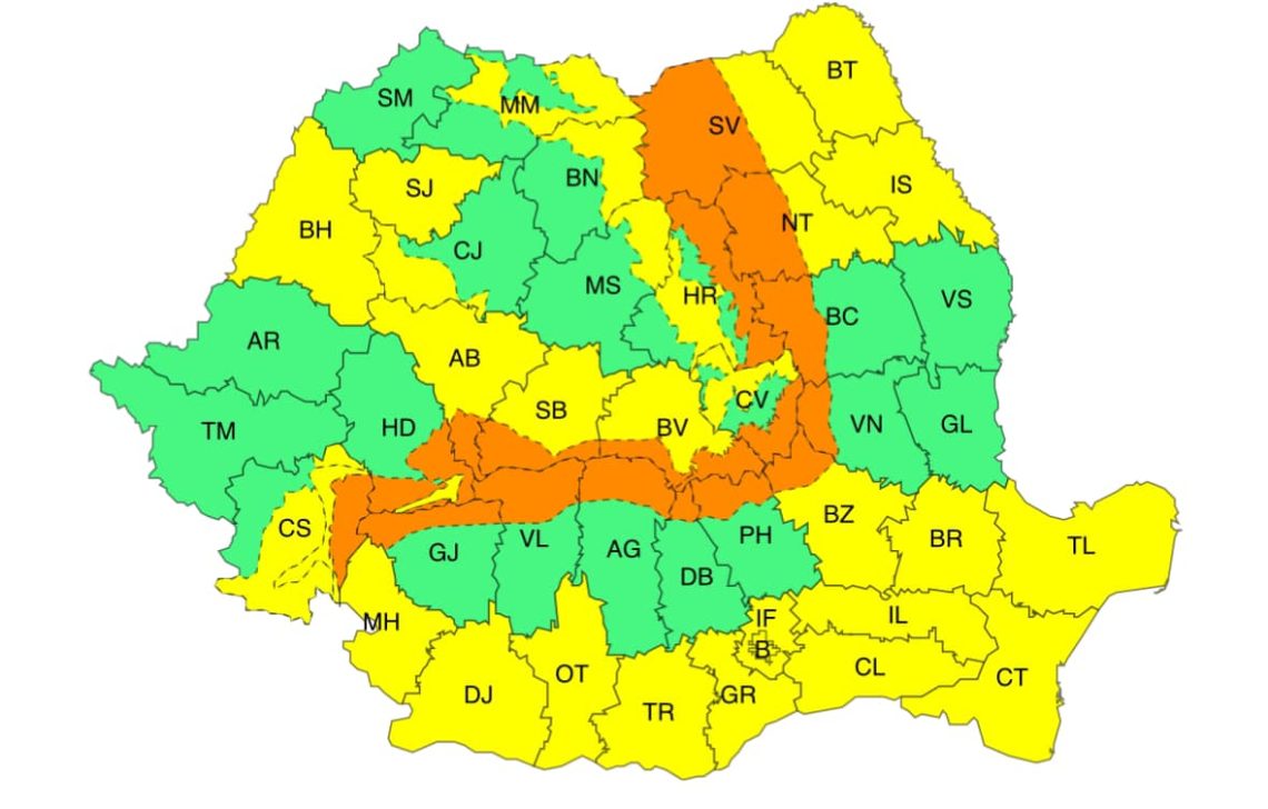 De duminică de la ora 10.00 a intrat în vigoare un cod galben de intensificări ale vântului și viscol, valabil până luni dimineață. La munte, vântul va avea intensificări cu viteze la rafală de 50…70 km/h, iar la altitudini de peste 1500 m, de 75…95 km/h și vor fi perioade cu viscol.