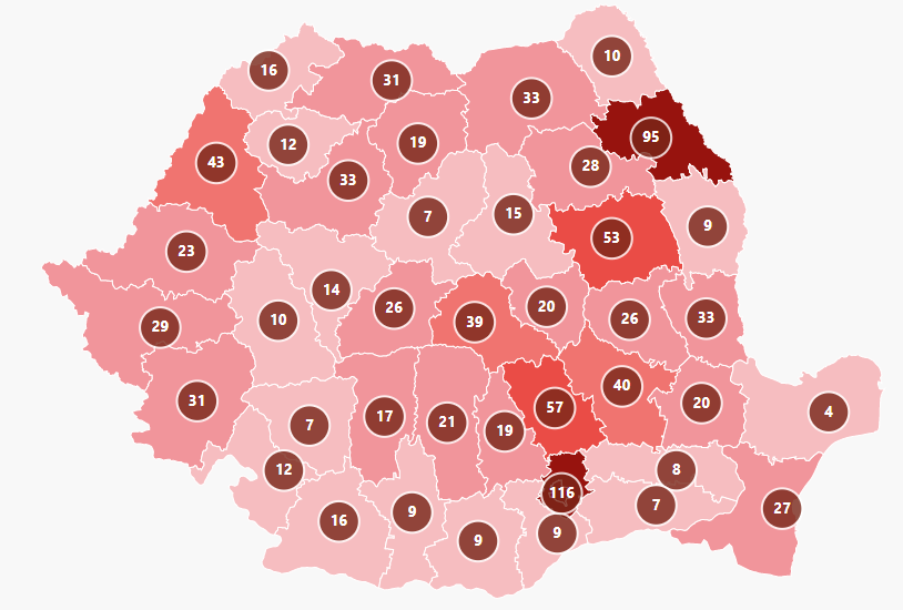 De asemenea, printre judeţele în care au fost înregistrate decese în ultima zi, se numără şi Covasna.