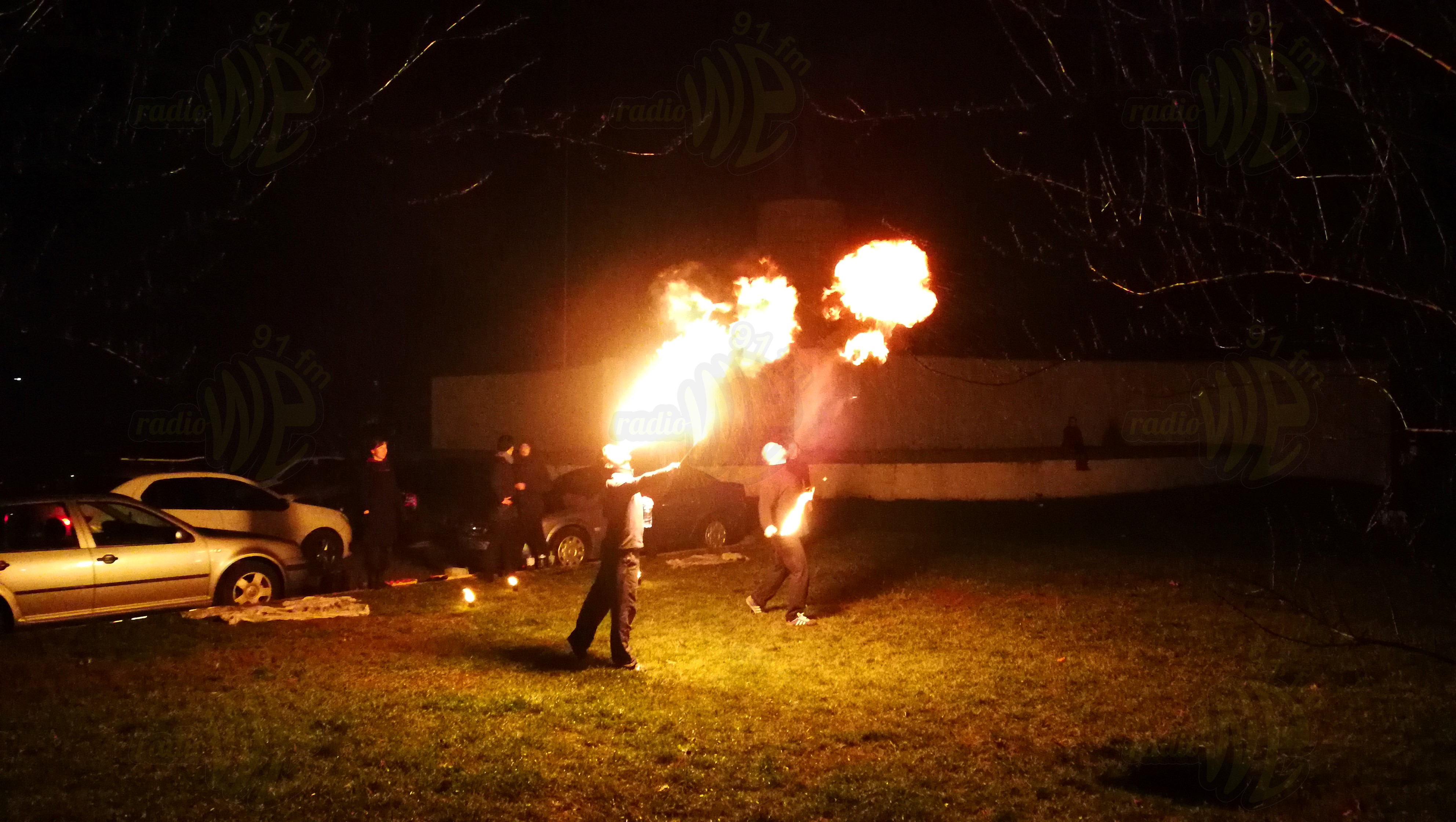 Artiștii teatrului de mișcare M Studio au participat la program cu cascadorii de jonglerii cu foc, spectacolul extrem de spectaculos.