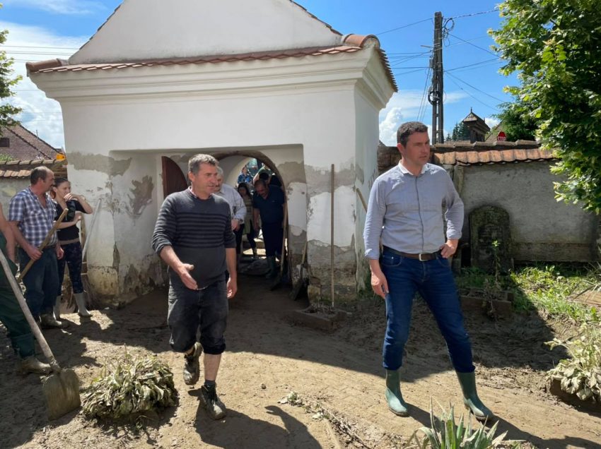 În localitatea Herculian, localnicii au lucrat umăr la umăr cu salvatorii pentru a evacua nămolul din interiorul Bisericii Reformate din localitate, unde apa a depășit un metru, potrivit Prefecturii Covasna.