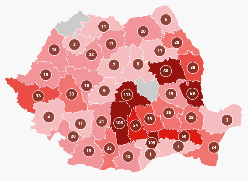 Judeţele Covasna şi Satu Mare sunt singurele din ţară care astăzi nu au niciun caz nou raportat.