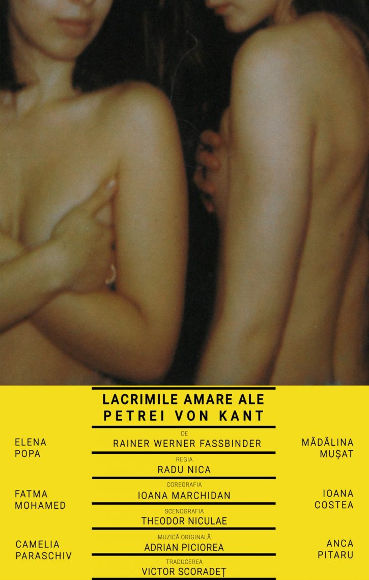 „Lacrmile amare ale Petrei von Kant, una dintre piesele cele mai jucate ale genialului cineast Rainer Werner Fassbinder, e și unul dintre cele mai mari succese teatrale ale sale. În anul 1972, a Fassbinder a creat și versiunea cinematografică a piesei. E povestea unei creatoare de modă aflată în plină ascensiune profesională, care are o criză existențială deoarece iubita ei o părăsește pentru a se întoarce la soțul ei.