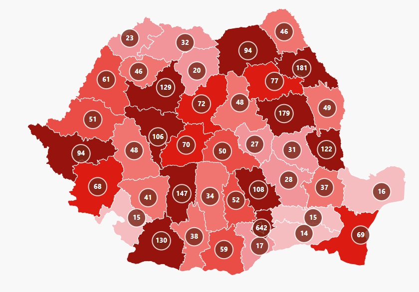 Județele în care coeficientul infectărilor cumulate la 14 zile, raportate la 1.000 de locuitori, este peste pragul de 1,5 sunt următoarele: