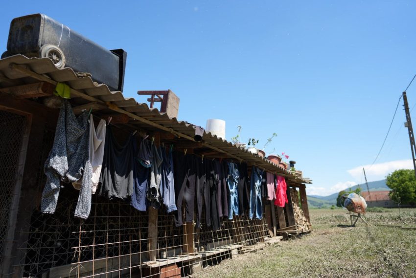 Tanti Garofiţa, care are peste 80 de ani, stă în ultima casă din sat, dincolo de pod. Ne-a poftit să vedem ce-a mai rămas din ce-a strâns o viaţă. Pereţii, acoperiţi cu covoare de lână înflorate, sunt acum coşcoviţi, iar lucrurile, adunate de-a valma: haine, farfurii, fotografii.