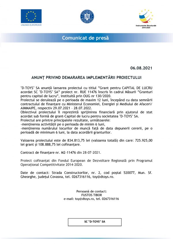 Locale SC “D-TOYS” SA: Anunț privind demararea implementării proiectului By We Radio 06.08.2021 Distribuie, să afle şi alţiiPublicitatePublicitate Publicitate Alte ştiri Locale Întâlnirile primarului Antal Árpád cu cetăţenii pe tema impozitelor, transmise live 19.01.2026 Locale Spitalul Județean din Sfântu Gheorghe reia cursurile pentru viitorii părinți, cu un accent sporit pe activitățile practice 19.01.2026 Locale Elevii Școlii Gimnaziale „Gödri Ferenc” din Sfântu Gheorghe au marcat Ziua Culturii Naționale printr-un concurs de poezie 18.01.2026