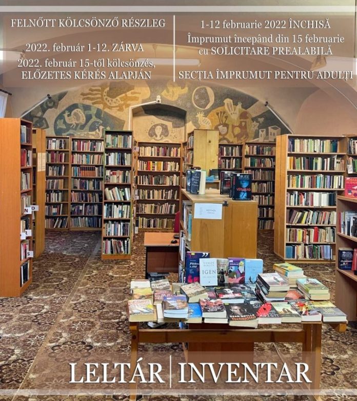 „În perioada 1 februarie – 1 aprilie 2022 Secția de împrumut pentru adulți a bibliotecii intră în proces de inventariere a colecției. În perioada 1-12 februarie secția va fi ÎNCHISĂ. Documentele dorite pot fi solicitate accesând contul personal pe pagina catalogului virtual, prin e-mail la adresa: [email protected], sau prin telefon la numărul: 0267 312 133, și se pot prelua după 24 de ore, de la Sala de lectură, de marți până vineri, între orele 09:00 și 17:00, iar sâmbătă între orele 09:00 și 13:00”, se arată într-o postare pe pagina de Facebook a Bibliotecii.