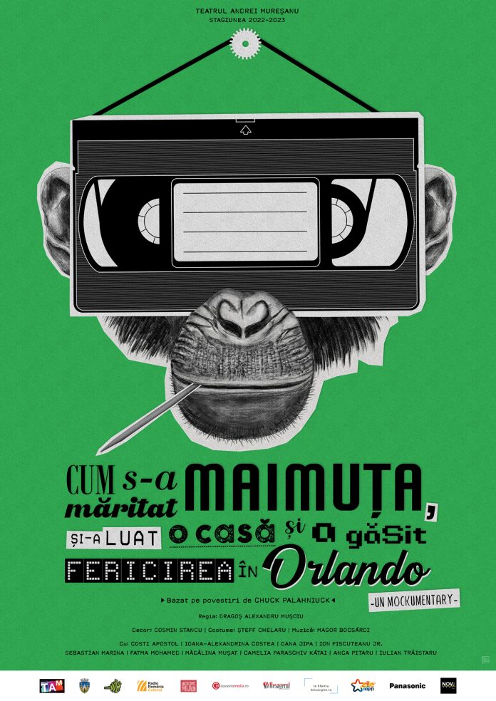 Teatrul „Andrei Mureșanu” încheie stagiunea 2022-2023 cu premiera spectacolului „Cum s-a măritat maimuța, și-a luat casă și a găsit fericirea în Orlando”, în regia lui Dragoș Alexandru Mușoiu, un mockumentary bazat pe patru texte scrise de Chuck Palahniuk.