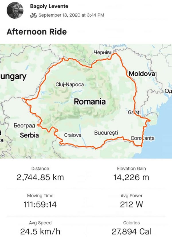 Tot anul trecut a parcurs 4000 de kilometri pe două roţi pe traseul Burgas-Brest, în 12 zile şi jumătate, iar luna trecută a câştigat prima ediţie a concursului Hungarian Divide 2020, o cursă de 1200 de kilometri, cu o diferenţă de nivel de aproape 2.000 de metri, trecând linia de finish în mai puţin de cinci zile, mai exact în 4 zile, 23 de ore şi 7 minute.